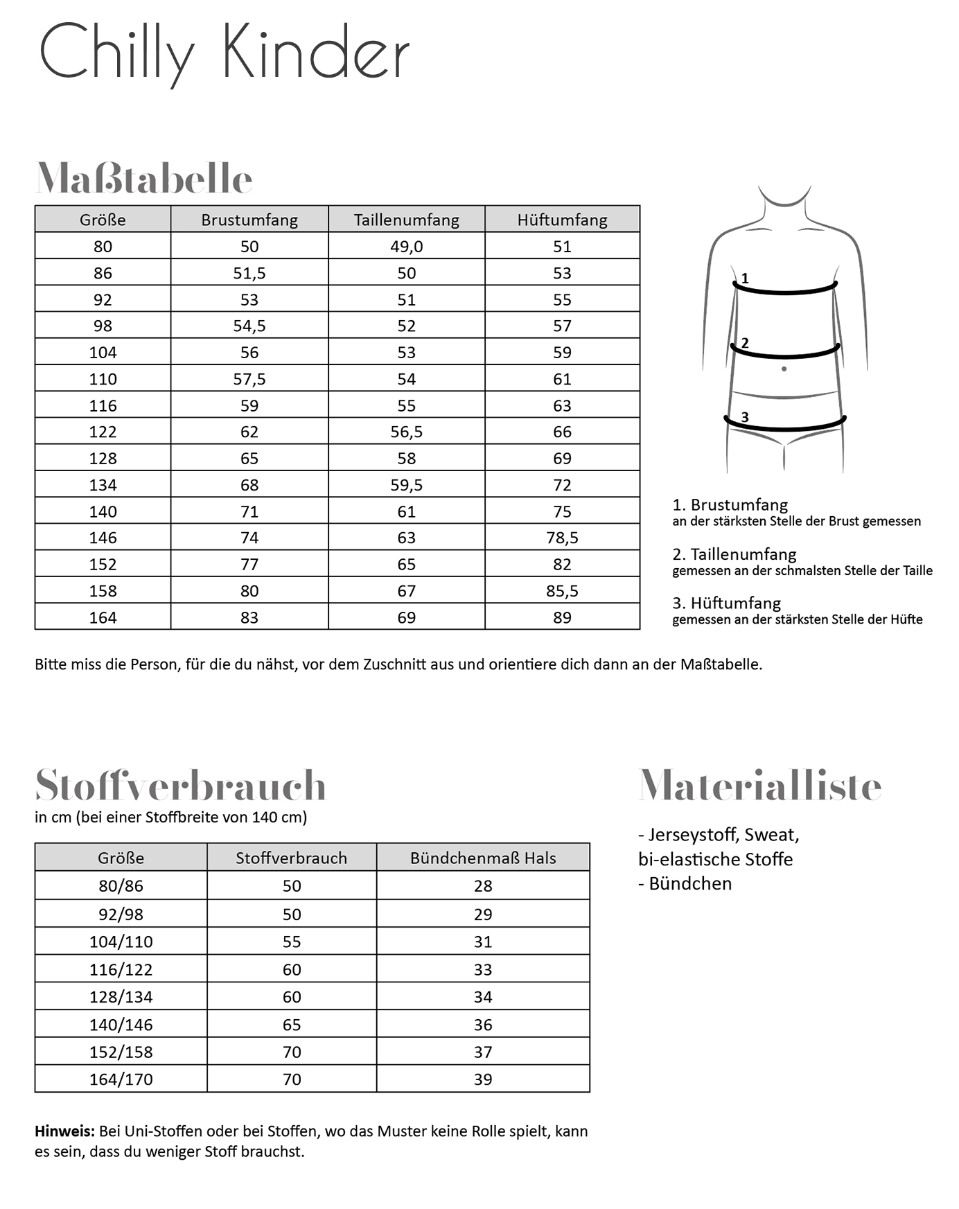 Das Schnittmuster gibt es in den Größen 80 bis 164.