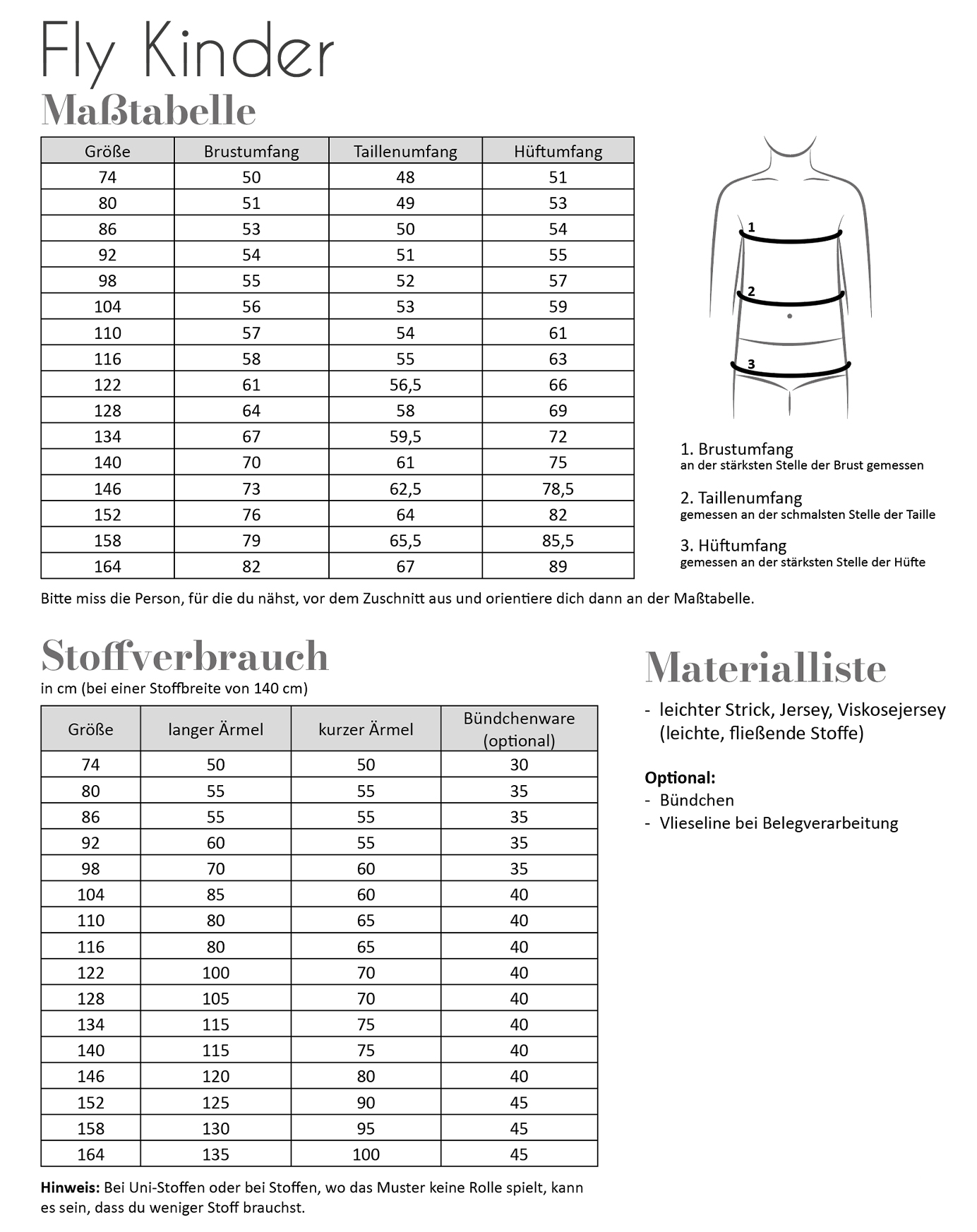 Fly ist ein schnell genähtes Shirt mit überschnittenen Ärmeln, das du sowohl mit langen als auch kurzen Ärmeln nähen kannst. Zudem hast du die Wahl zwischen einer Version mit Beleg am Ausschnitt oder einem Bündchen. Fly kann ganz leicht im angesagten Colour-Blocking-Style genäht werden – eine Anleitung dafür ist enthalten.