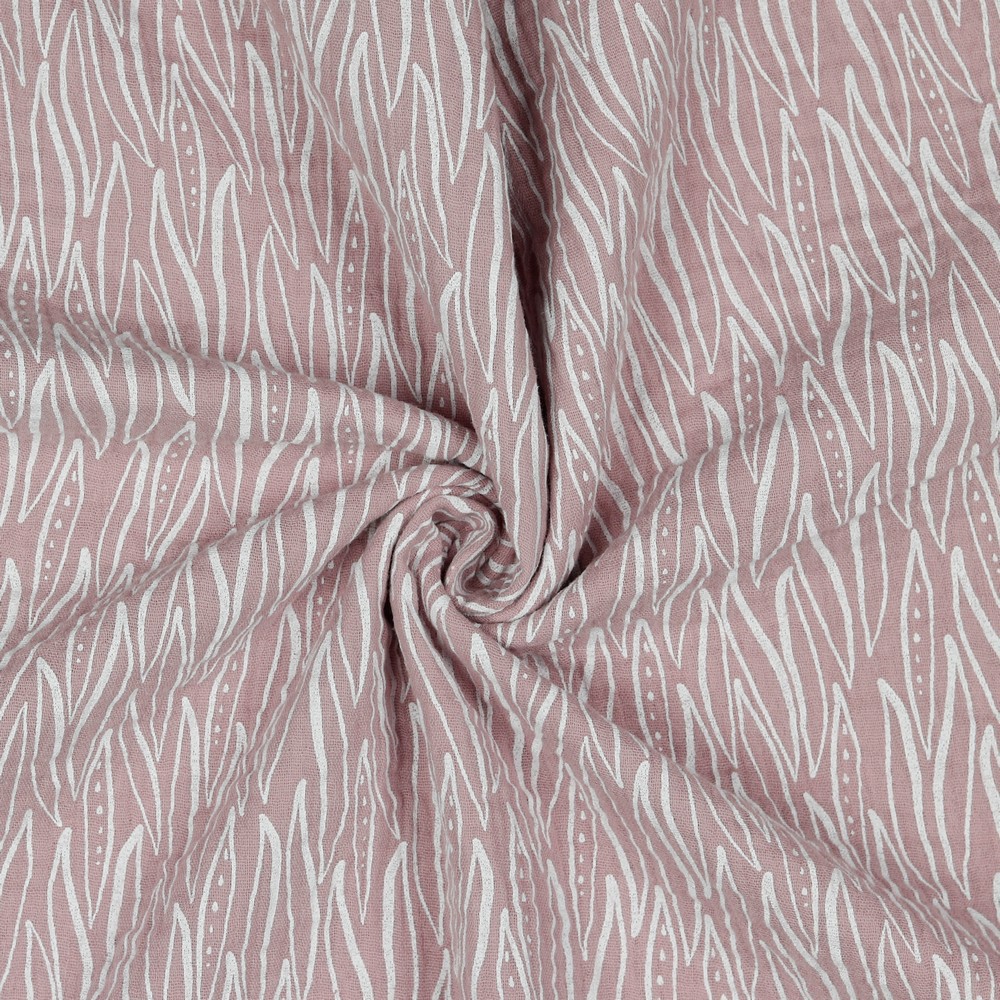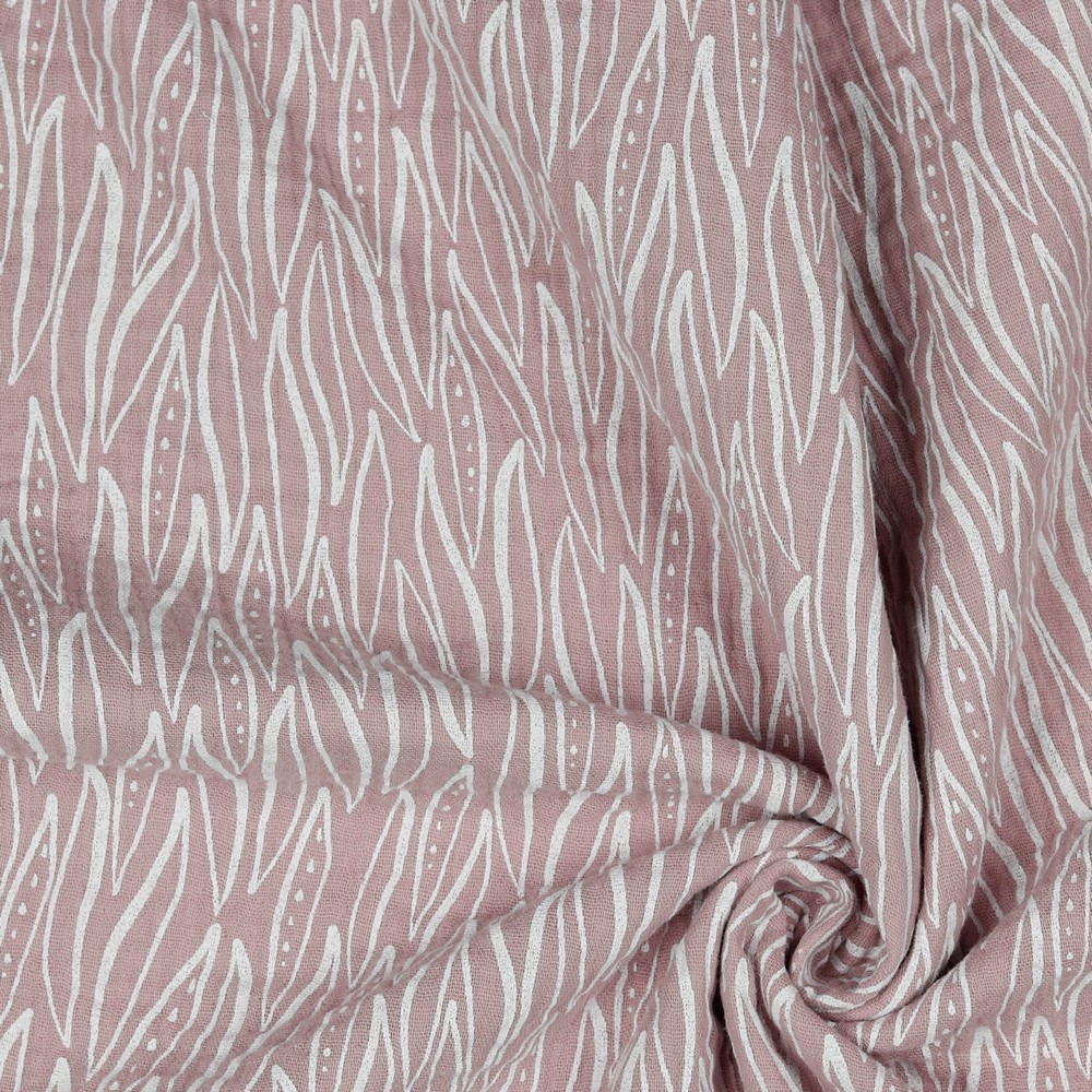 Musselin (Double Gauze) mit Blättern auf Altrosa