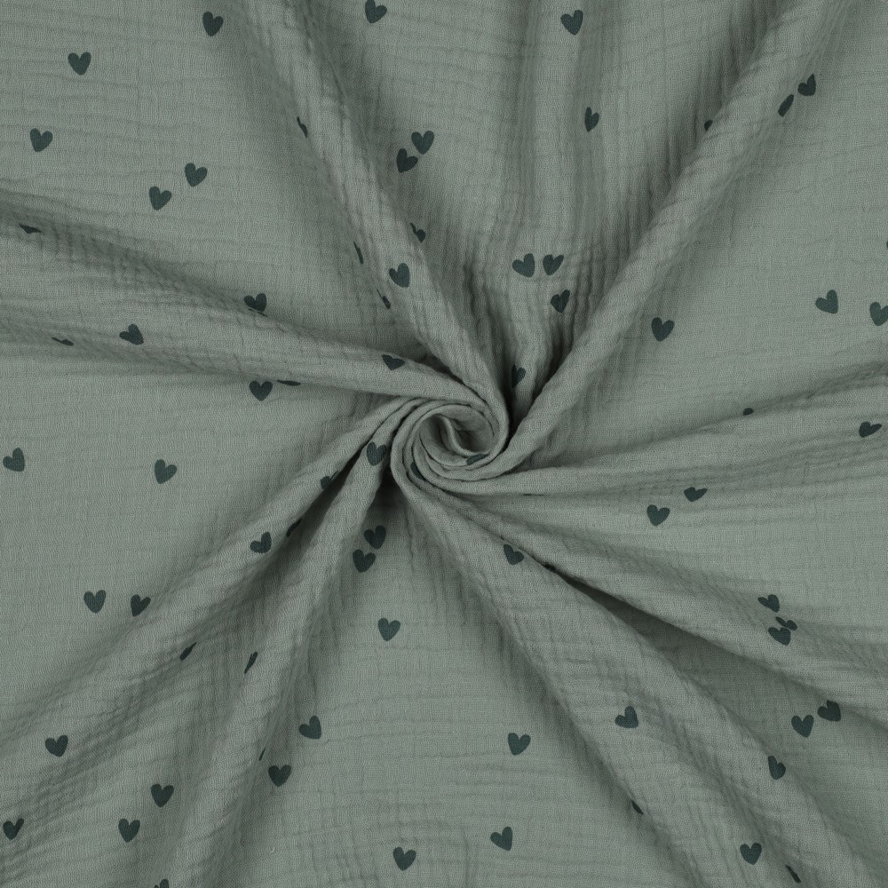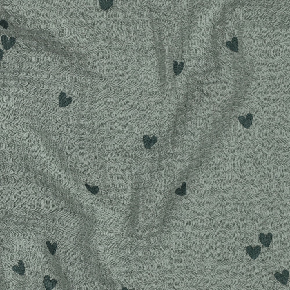 Feiner Musselin (Double Gauze) mit vielen kleine Herzen in Nil Grün