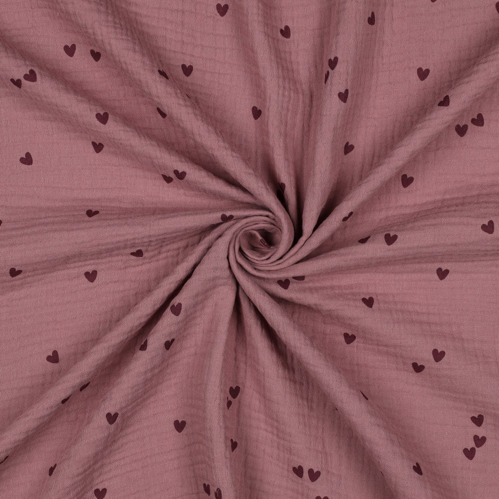 Feiner Musselin (Double Gauze) mit vielen kleine Herzen in Hell Lila