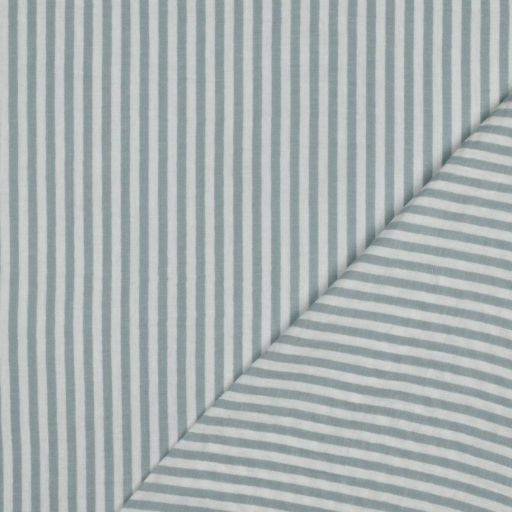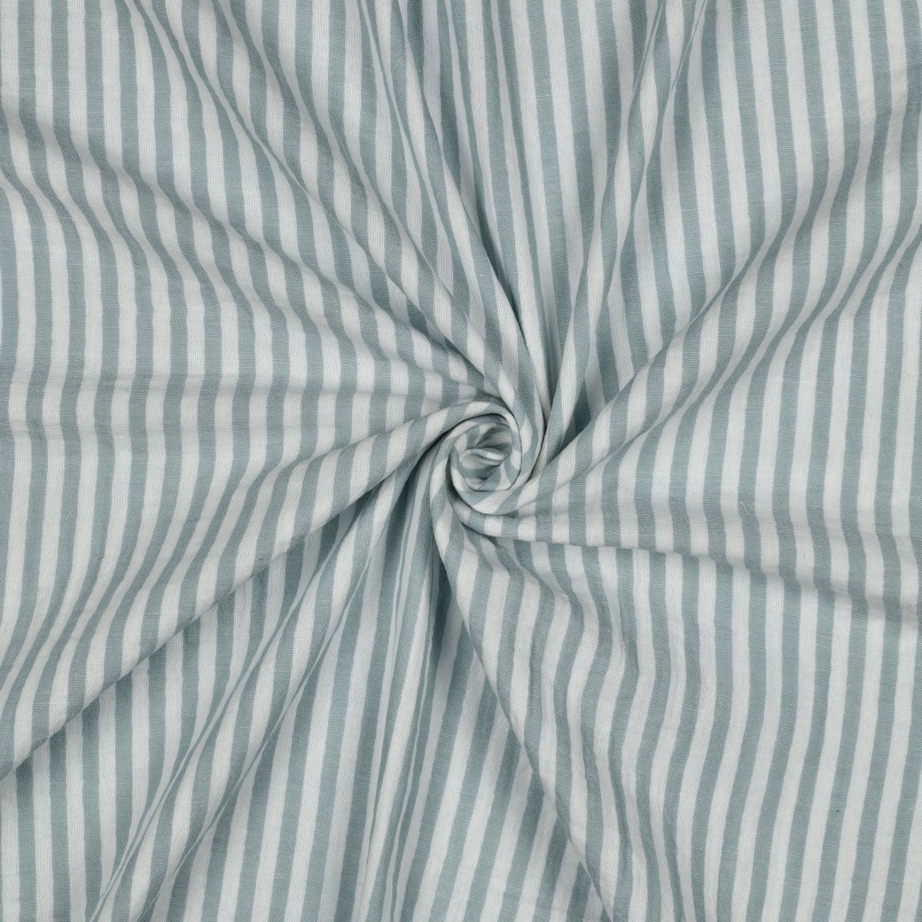 Garngefärbter Musselin (Double Gauze) mit vielen kleine Streifen in Salbei Weiss