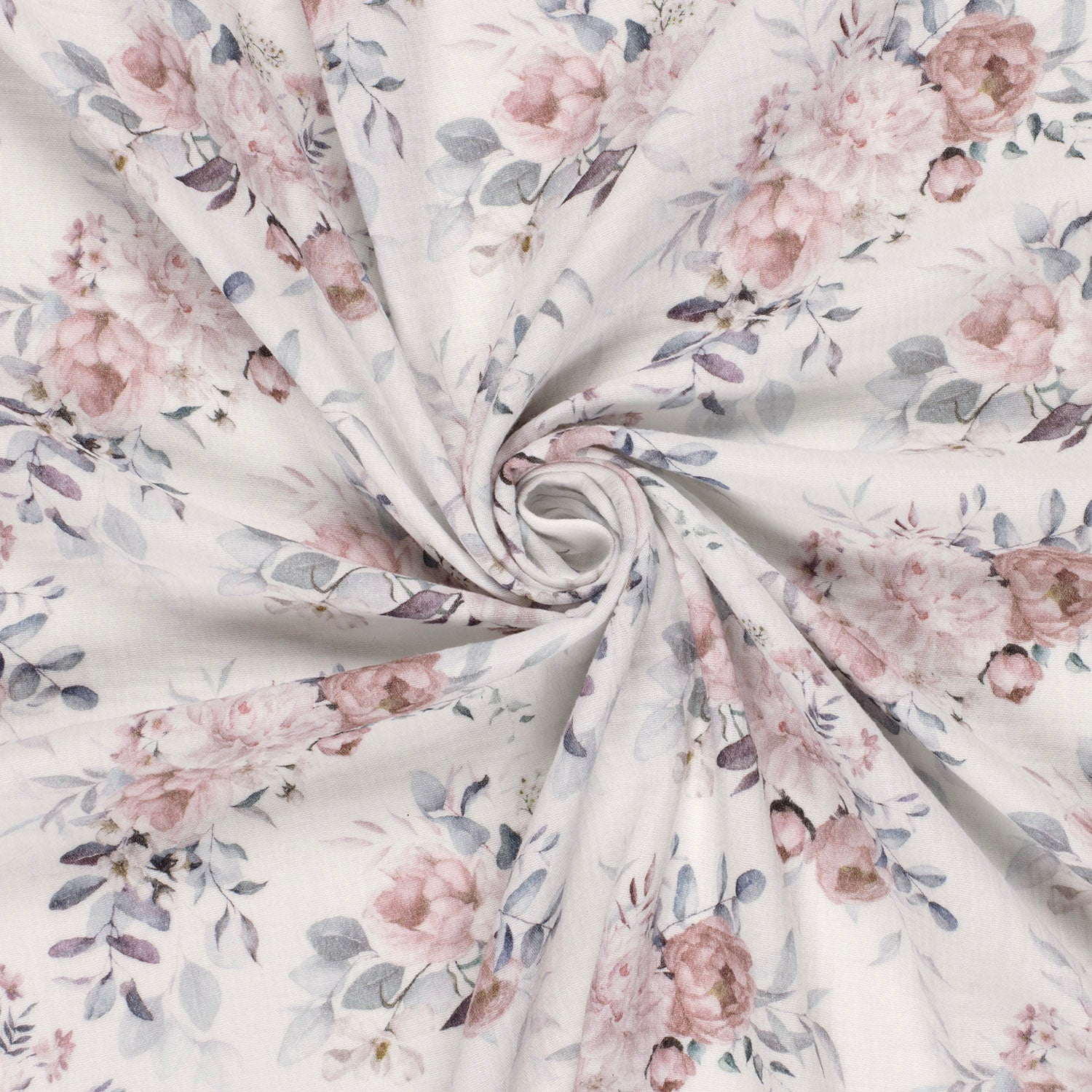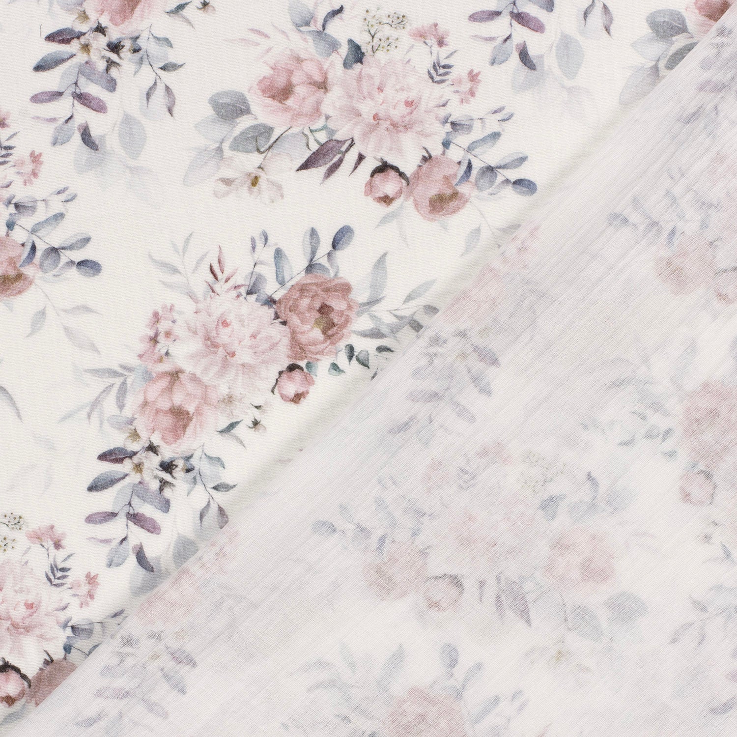 Feiner Musselin (Double Gauze) mit Pfingstrosen (Digitaldruck)