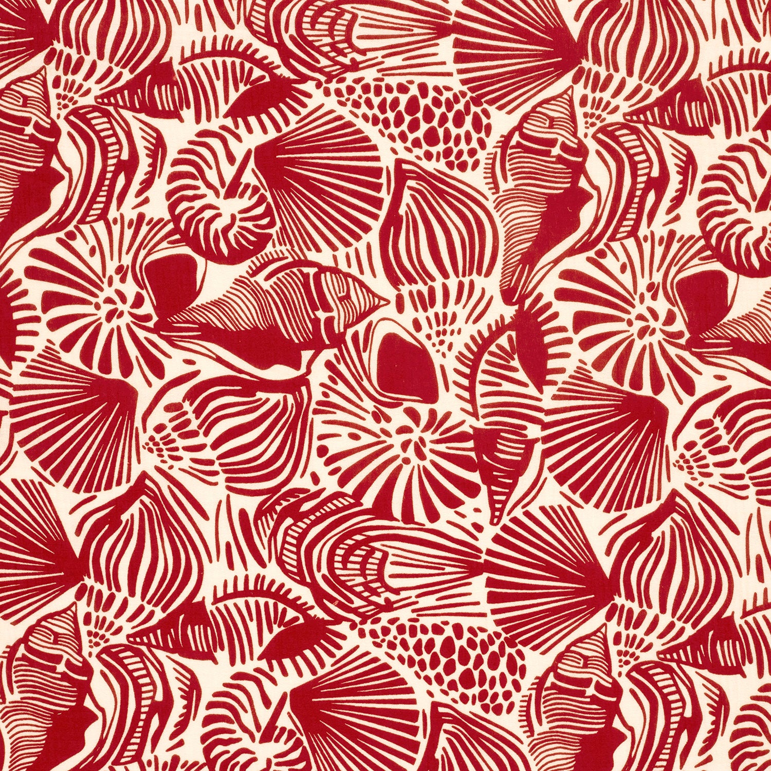Feiner Musselin (Double Gauze) mit Muschelprint in Rot und Weiss