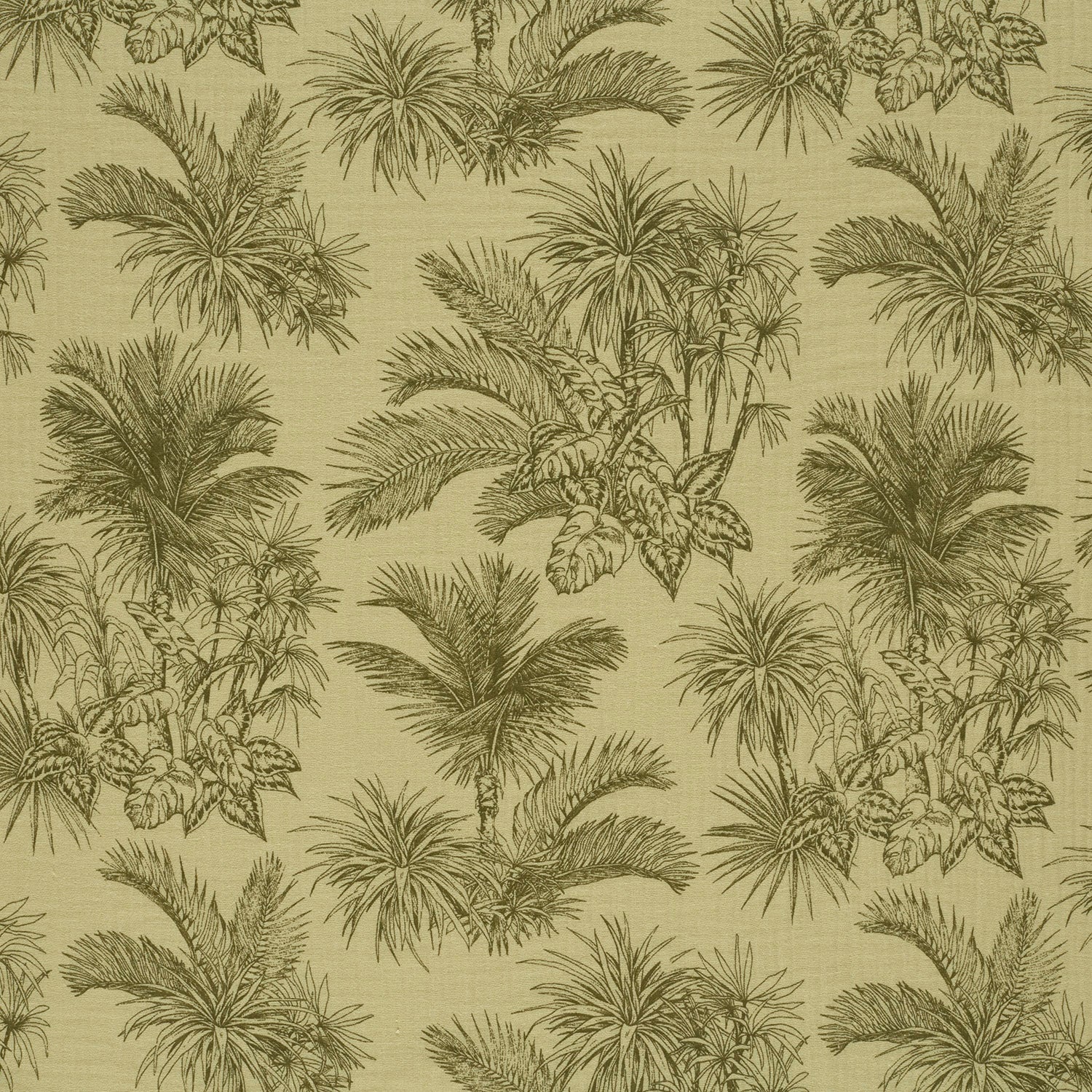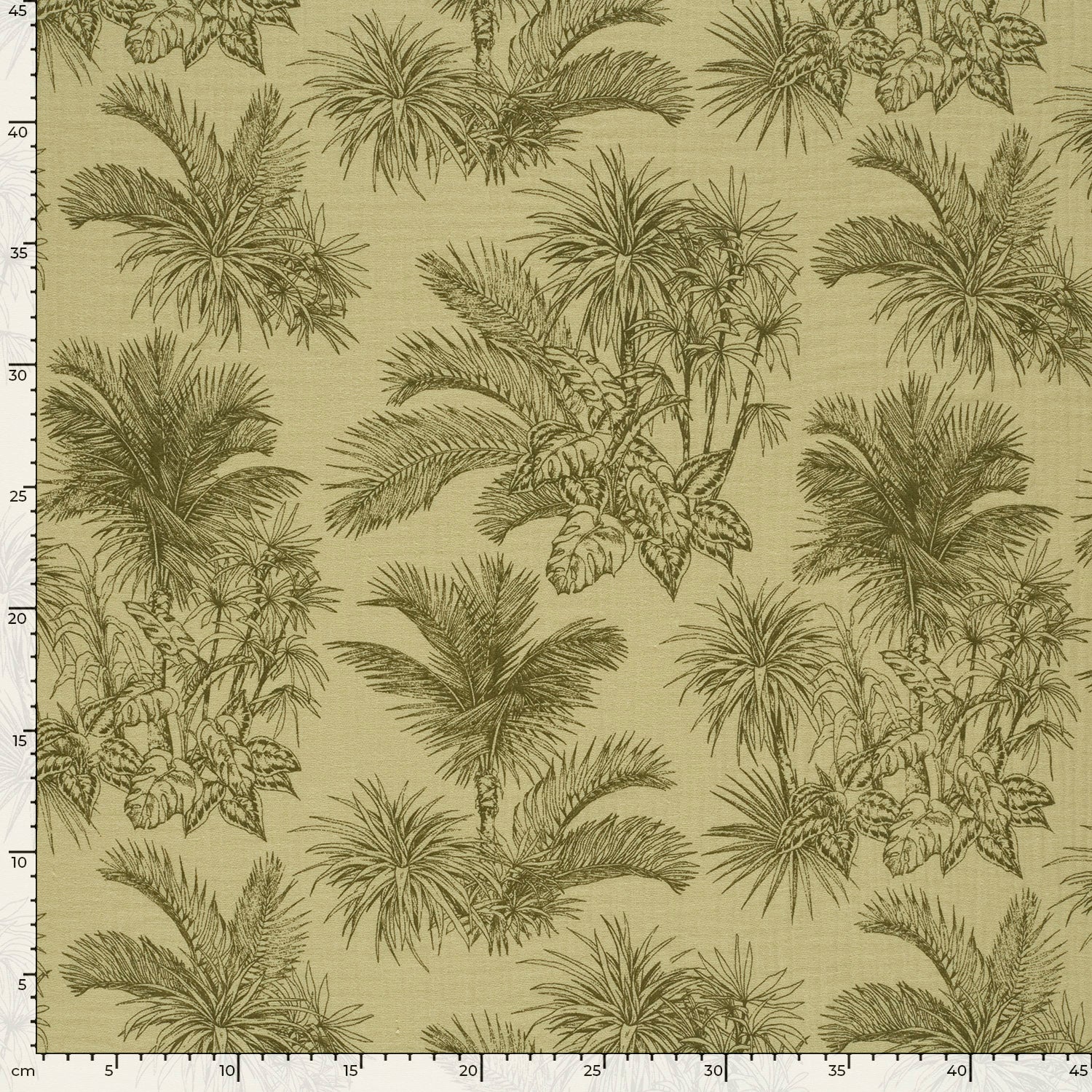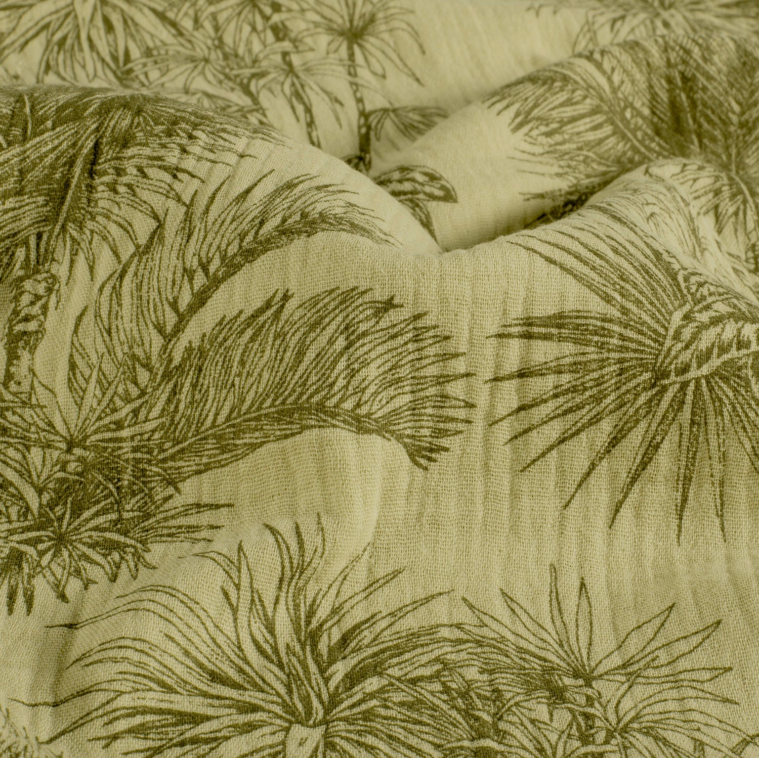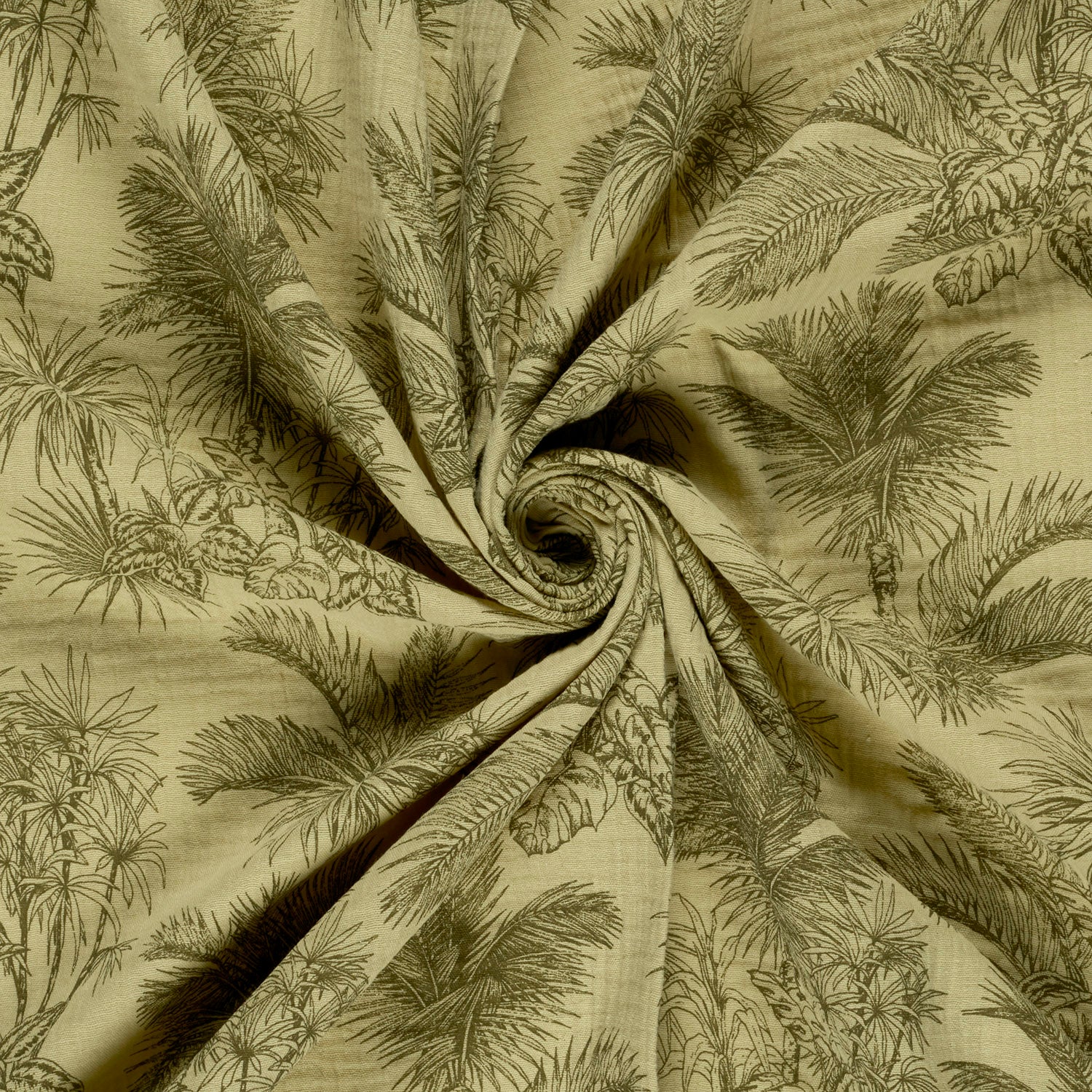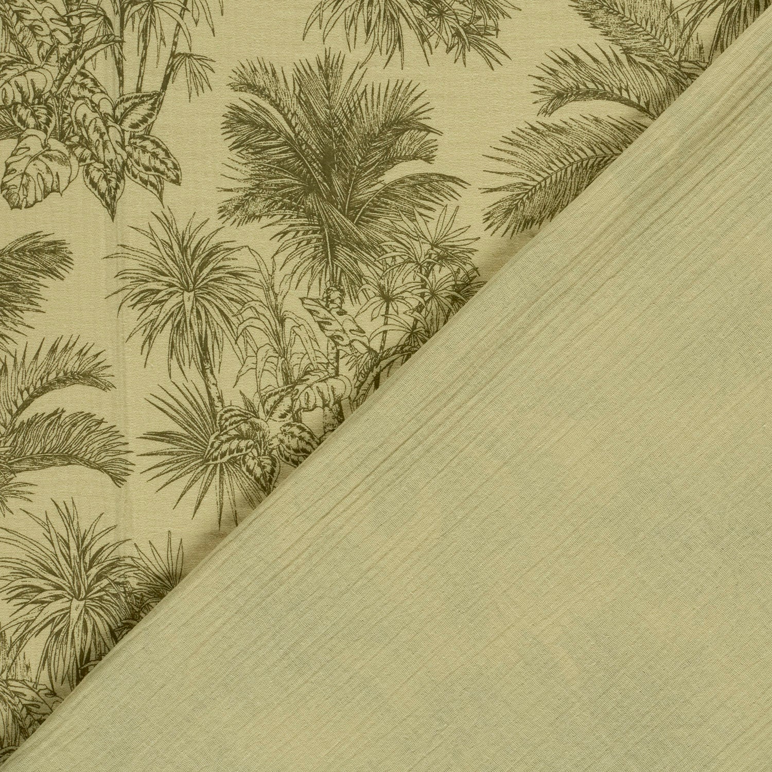 Feiner Musselin (Double Gauze) mit Palmenprint auf Khaki