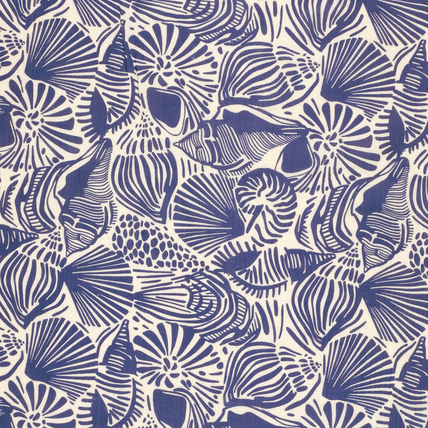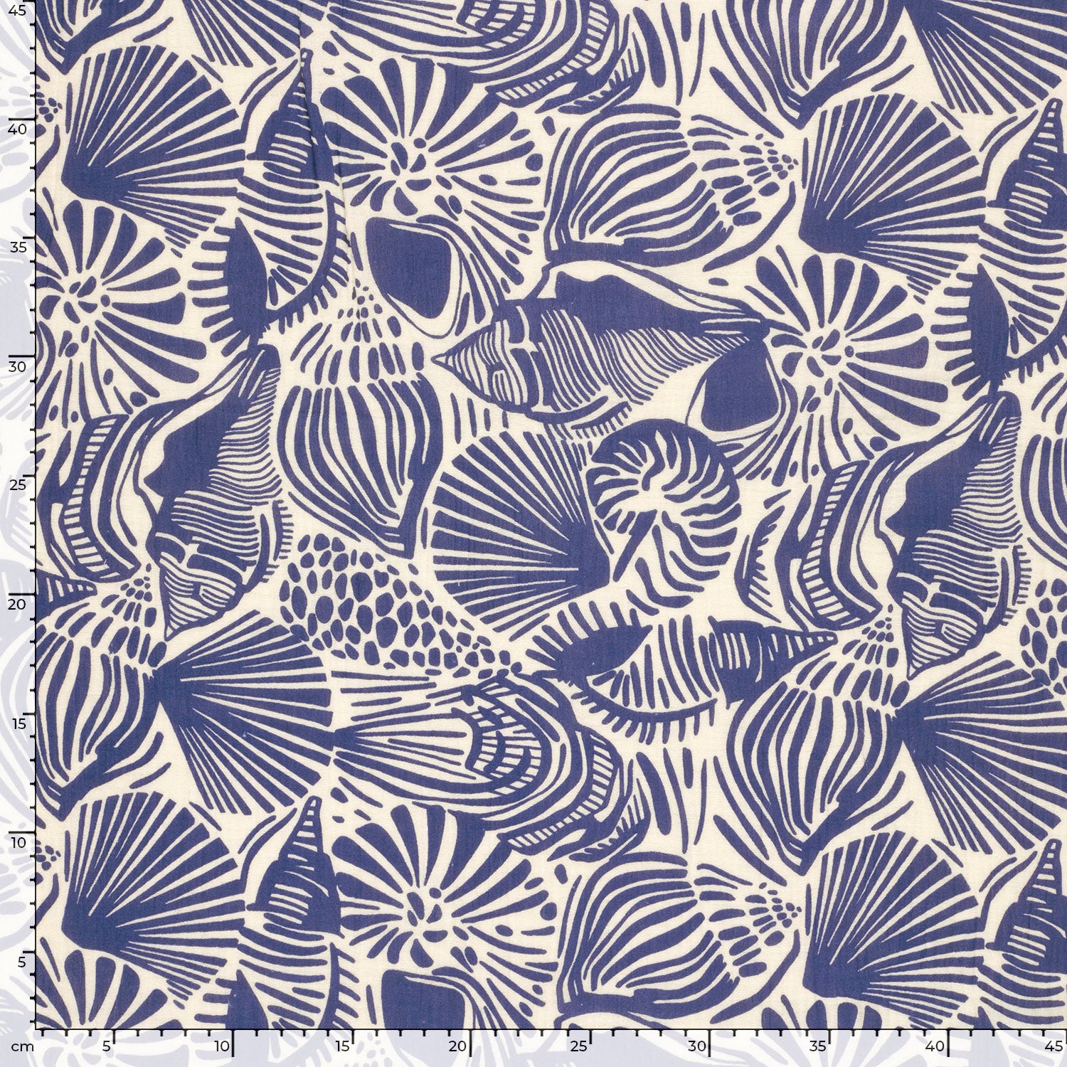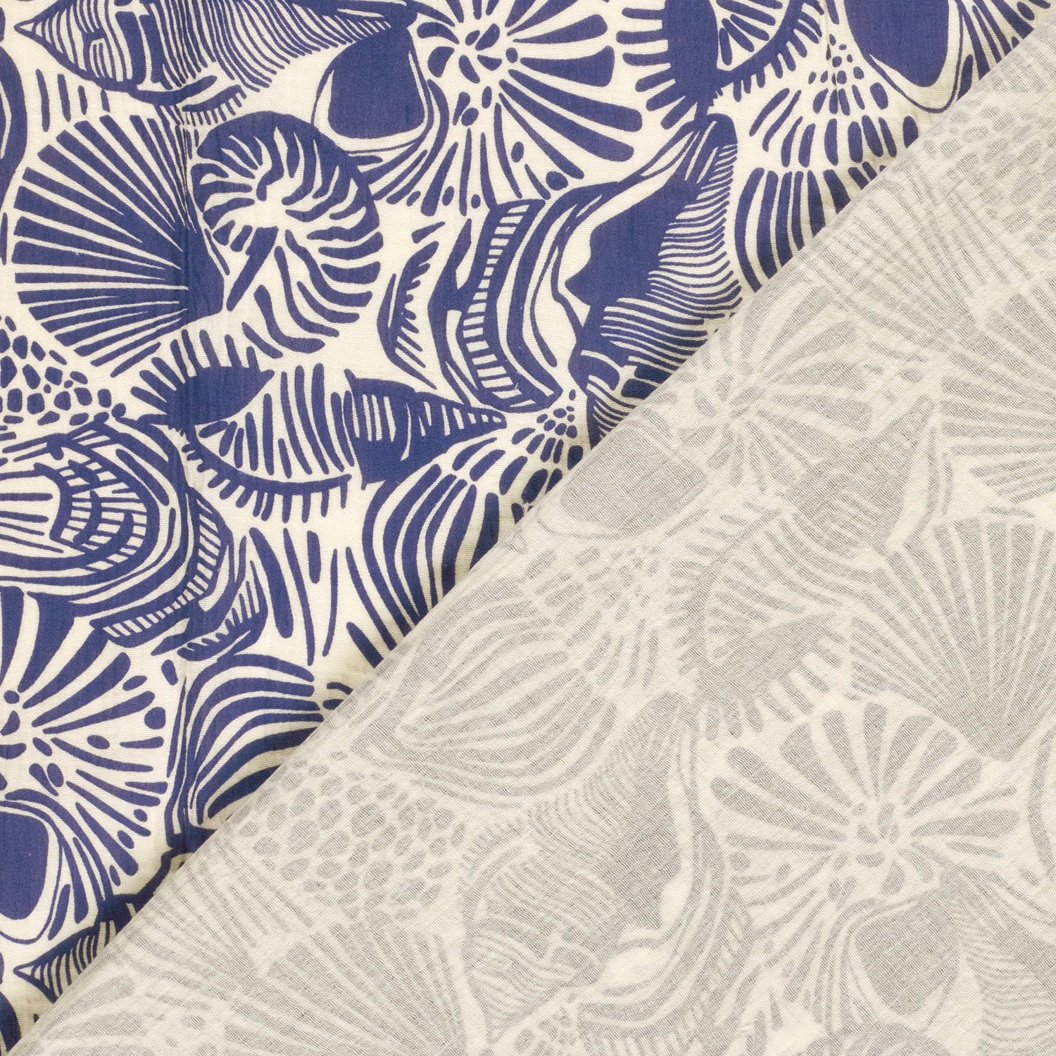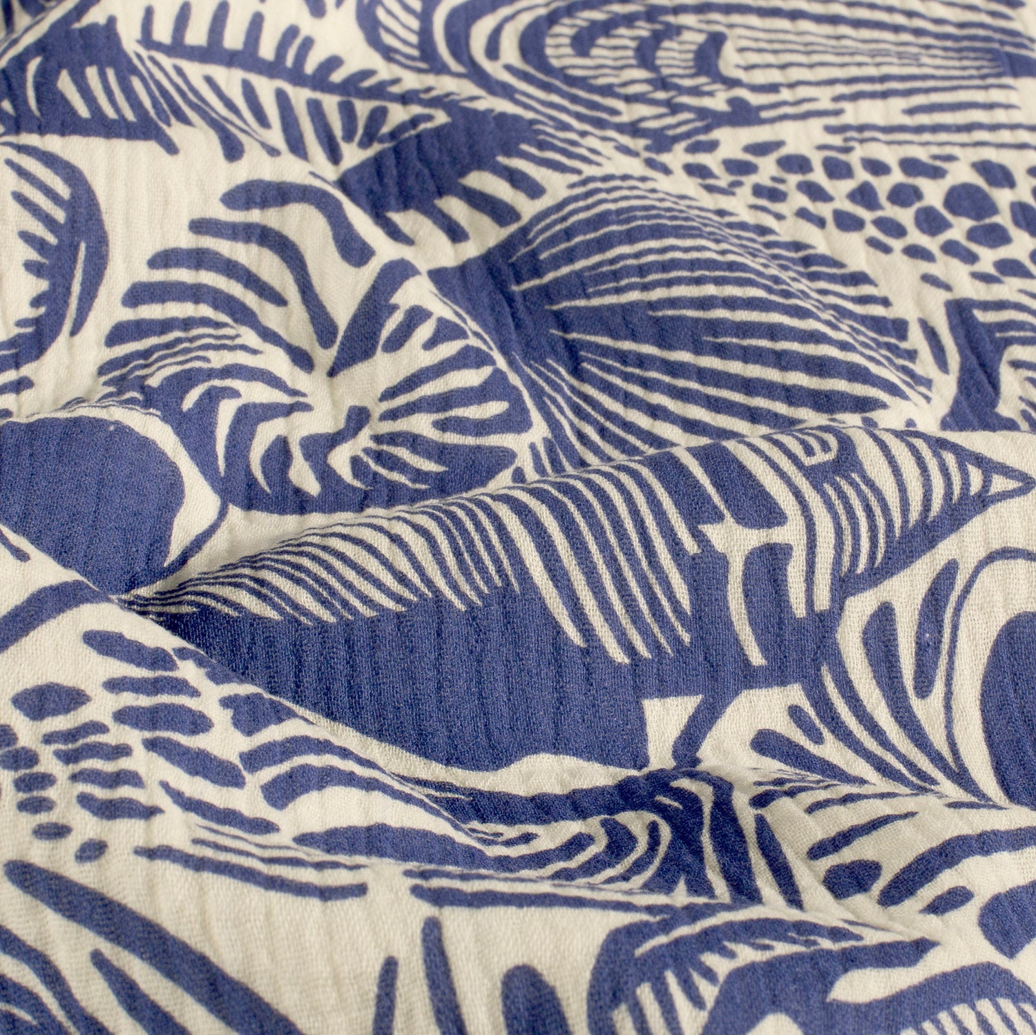 Feiner Musselin (Double Gauze) mit Muschelprint in Meerblau und Weiss